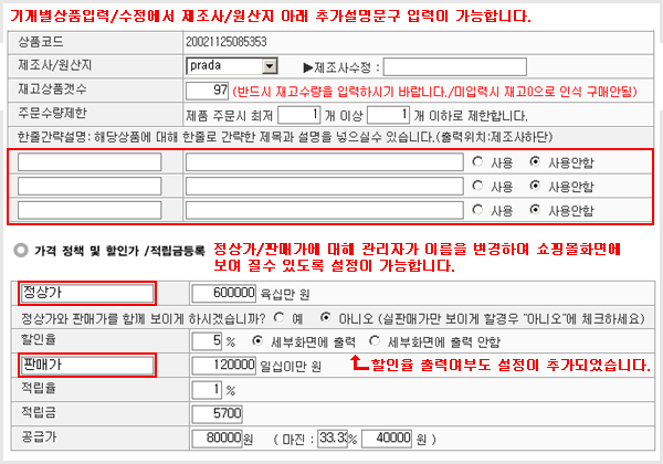 6. »óǰ»ó¼¼È¸é ÇÑÁÙ°£´Ü¼³¸í ¹®±¸ÀÔ·Â ±â´É ¹× Á¤»ó°¡/ÆÇ¸Å°¡À̸§ º¯°æ±â´É Ãß°¡