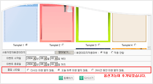 ÇØ´ç ±â´ÉÀº °ü¸®ÀÚȸé-->µðÀÚÀΰü¸®-->À̺¥Æ®/»õâ°ü¸®¿¡¼ ÇϽǼö ÀÖ½À´Ï´Ù.