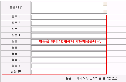 - ±âÁ¸ ÅõÇ¥/¼³¹®Á¶»çÀÇ °¹¼ö°¡ 6°³¿¡¼ ÃÖ´ë 10±îÁö Ç׸ñÀ» Ãß°¡ÇÏ¿© ¼³¹®Á¶»ç¸¦