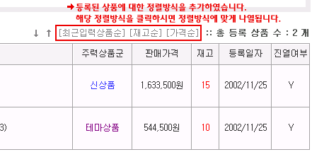 8. Àüüµî·Ï»óǰ¿¡ ´ëÇØ ÃÖ±Ùµî·Ï¼ø|Àç°í¼ø|°¡°Ý¼ø Á¤·Ä±â´É Ãß°¡