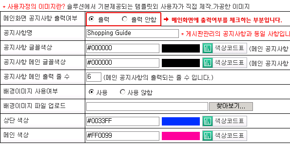 5.¸ÞÀÎ »ó´Ü°øÁö»çÇ×°ü¸® ¸Þ´º-->¸ÞÀÎÈ¸é °øÁö»çÇ× Ãâ·Â¿©ºÎ¿¡¼ ¼³Á¤ÇÒ¼ö ÀÖ½À´Ï´Ù.