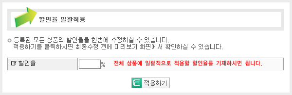 ¸Þ´ºÀ§Ä¡: °ü¸®ÀÚȸé-->»óǰ°ü¸®-->ÇÒÀÎÀ² ÀϰýÀû¿ë