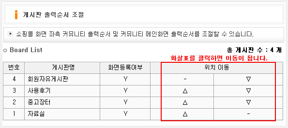 »ó±â ±â´ÉÀº °ü¸®ÀÚÈ¸é °Ô½ÃÆÇ°ü¸®-->°Ô½ÃÆÇ Ãâ·Â¼ø¼Á¶Àý ¸Þ´º¸¦ ÅëÇØ °Ô½ÃÆÇÀÇ Ãâ·Â¼ø¼¸¦