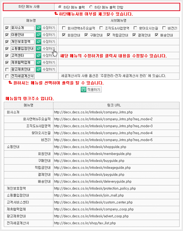ù¹øÂ°. Çϴܸ޴º¿¡´ëÇÑ Ãâ·Â¿©ºÎ ¿É¼ÇÀ» µÎ¾î Çϴܸ޴ºÀüü¿¡ ´ëÇØ Ãâ·Â¿©ºÎ¸¦ Á¶Á¤ÇÒ¼ö