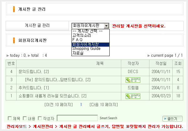 ±âŸ °Ô½ÃÆÇÀÇ °æ¿ì ¼îÇθôÀ̳ª °ü¸®ÀÚÈ¸é ¸ðµÎ¿¡¼ ±Û¾²±â³ª ´äº¯ÀÌ °¡´ÉÇÕ´Ï´Ù.