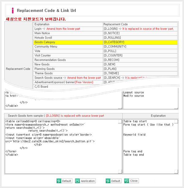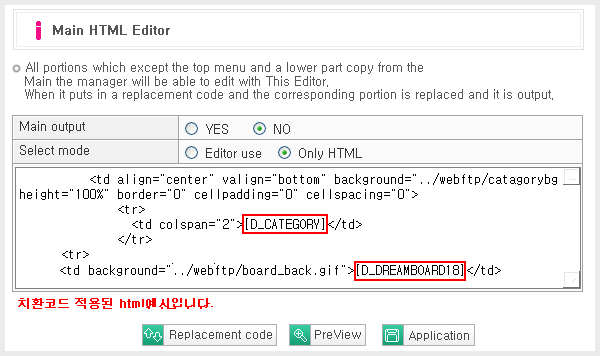 1.Main html Edit ¸Þ´º Replacement Code ±â´É Ãß°¡