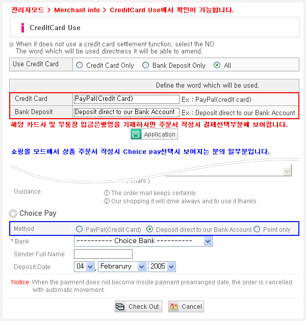 Credit Card ¿Í Bank Deposit ¿¡ ´ëÇØ Description ¼³¸í¹®À» Ãß°¡ÇÒ¼ö ÀÖ´Â ±â´É