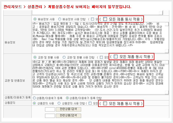 °³º°»óǰµî·Ï¼öÁ¤¿¡¼ ¿É¼ÇÀ» ¼öÁ¤ÇÏ¸é ¼îÇθôȸ鿡 Àû¿ëµË´Ï´Ù.