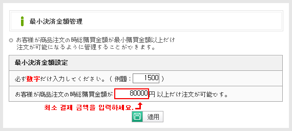 ÇØ´ç ±â´ÉÀº °í°´ÀÌ °áÁ¦½Ã ÃÖ¼Ò±¸¸Å±Ý¾×À» ¼³Á¤ÇÔÇÒ¼ö ÀÖ´Â ±â´ÉÀÔ´Ï´Ù.