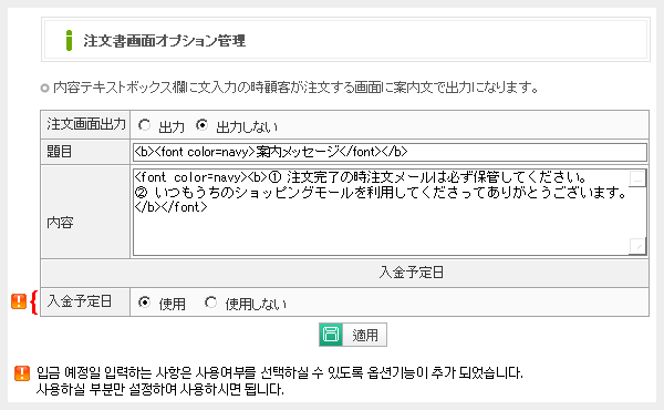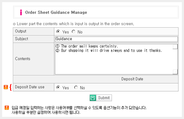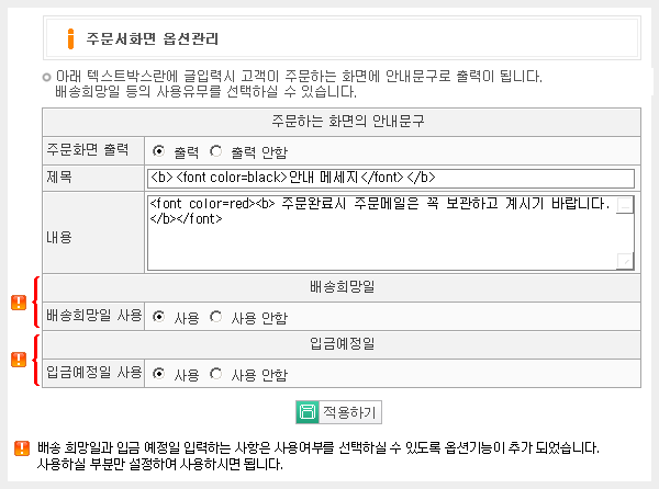 °ü¸®ÀÚȸé -->ÁÖ¹®°ü¸®(Order)->ÁÖ¹®¼È¸é ¿É¼Ç°ü¸®(Order Sheet Guidance) ¸Þ´º¿¡¼