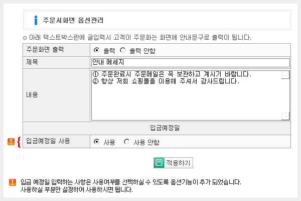 ÁÖ¹®¼ ÀԱݿ¹Á¤ÀÏ ¿É¼Ç±â´É ÀÔ´Ï´Ù.
