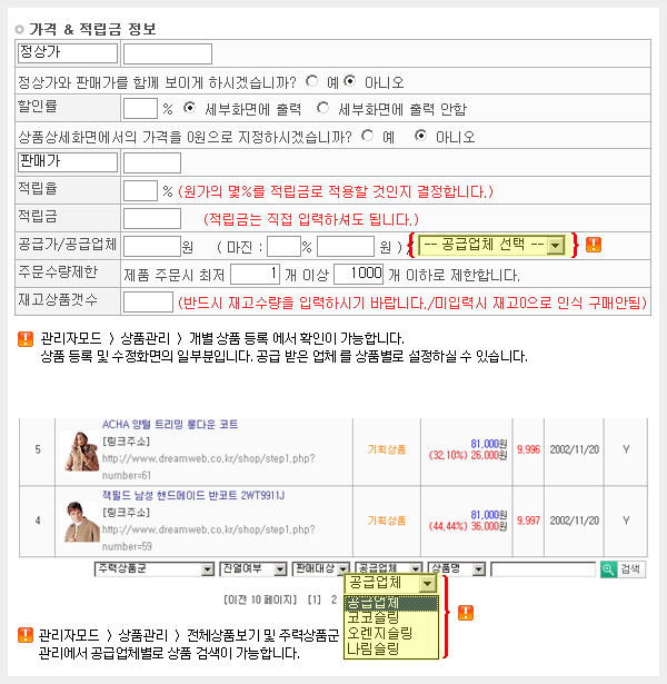»óǰµî·Ï,¼öÁ¤½Ã °ø±Þ¾÷ü ¿¬µ¿µî·Ï ±â´É ÀÔ´Ï´Ù.