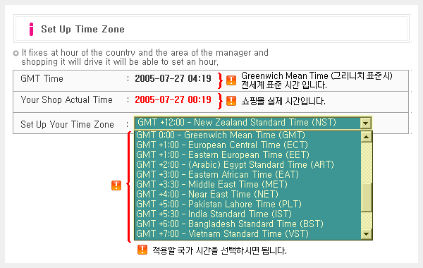 °ü¸®ÀÚȸé-->Merchant Info-->Set Up Time zone ¸Þ´º¿¡¼