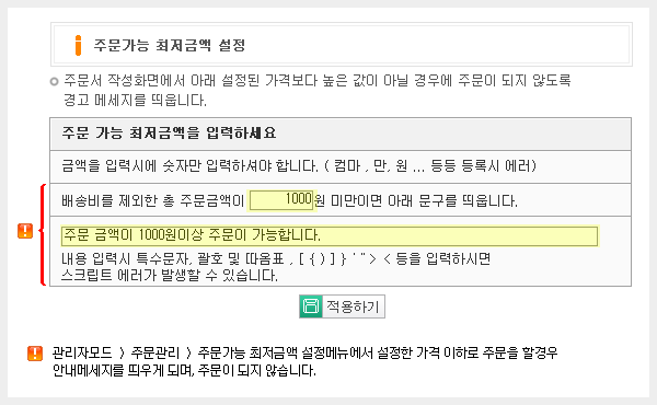°ü¸®ÀÚȸé-->ÁÖ¹®°ü¸®-->-->ÁÖ¹®°¡´É ÃÖÀú±Ý¾× ¼³Á¤¸Þ´º¿¡¼