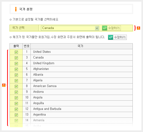 ȸ¿ø°¡ÀÔ, ȸ¿øÁ¤º¸¼öÁ¤, ÁÖ¹®¼ÀÛ¼º ½Ã¿¡ Ãâ·ÂµÇ´Â ±¹°¡¸¦ ¼±ÅÃÇÒ ¼ö ÀÖ´Â ±â´É