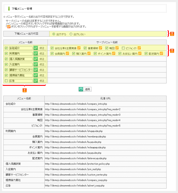 ù¹øÂ°. Çϴܸ޴º¿¡´ëÇÑ Ãâ·Â¿©ºÎ ¿É¼ÇÀ» µÎ¾î Çϴܸ޴ºÀüü¿¡ ´ëÇØ Ãâ·Â¿©ºÎ¸¦ Á¶Á¤ÇÒ¼ö