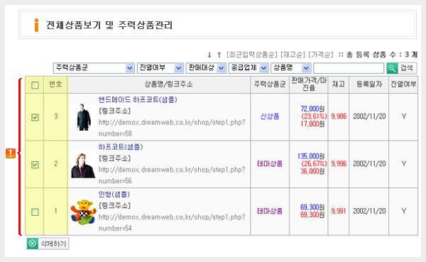 ±âµî·ÏµÈ »óǰ¿¡ ´ëÇØ Àϰý»èÁ¦±â´ÉÀÌ Ãß°¡µÇ¾ú½À´Ï´Ù.