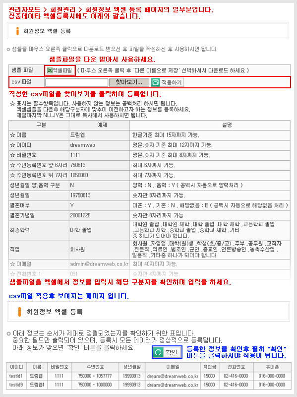 °ü¸®ÀÚ¸ðµå -> ȸ¿ø°ü¸® -> ȸ¿øµ¥ÀÌŸ ¿¢¼¿µî·Ï ¸Þ´º¿¡¼ ±â´ÉÀ» Á¦°øÇϰí ÀÖ½À´Ï´Ù.