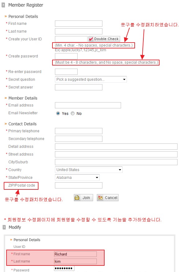 ±×¸®°í ȸ¿ø°¡ÀÔ ¹× ¼öÁ¤, ÁÖ¹®½Ã¿¡ ¿ìÆí¹øÈ£ ¿µ¹® ¹®±¸¸¦ "ZIP/Postal code"·Î º¯°æ ÆÐÄ¡ÇÏ¿´½À´Ï´Ù.
