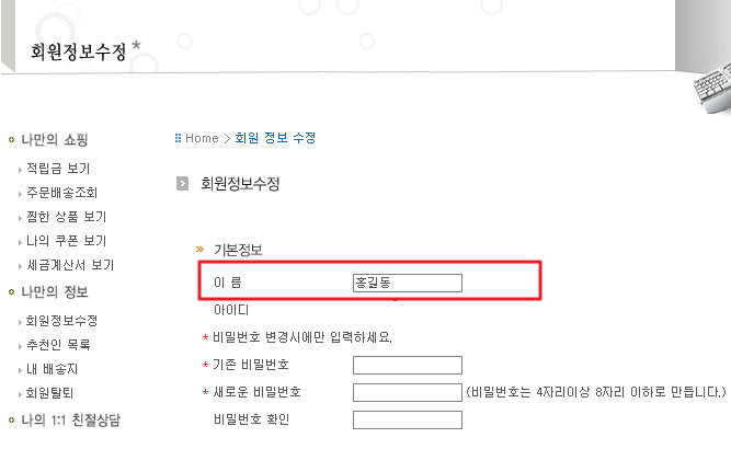 ¼îÇθô ȸ鿡¼ ȸ¿ø¼öÁ¤½Ã ȸ¿ø¸íÀ» ¼öÁ¤ÇÒ ¼ö ÀÖµµ·Ï ±â´ÉÀ» Ãß°¡ÇÏ¿´½À´Ï´Ù.