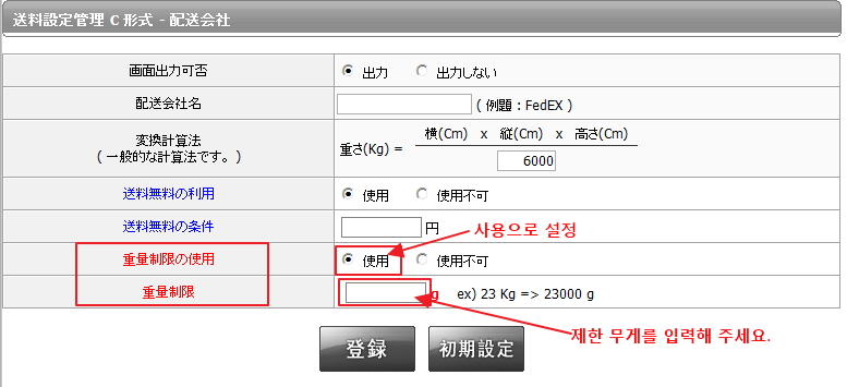 ¹è¼Û ¾÷üº°·Î ±×¸®°í ¹è¼Û Áö¿ªº°·Î ¹è¼Û°¡´ÉÇÑ Çã¿ë ¹«°Ô¸¦ ¼³Á¤ÇÒ ¼ö ÀÖ´Â ±â´ÉÀÔ´Ï´Ù.