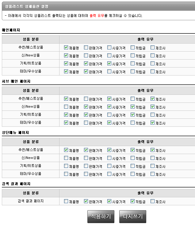 ¼³Á¤ÇÒ ¼ö ÀÖ´Â ±â´ÉÀÔ´Ï´Ù. °ü¸®ÀÚȸé --> µðÀÚÀÎ&µð½ºÇ÷¹ÀÌ ¼³Á¤-->»óǰ¸®½ºÆ® »ó¼¼¿É¼Ç¼³Á¤ ¿¡¼ ¼³Á¤ÇÒ ¼ö ÀÖ½À´Ï´Ù