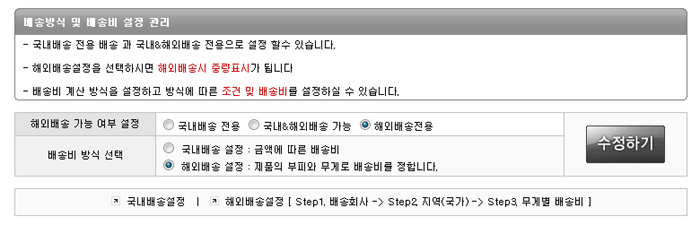 ±â´ÉÀÌ Ãß°¡µÇ¾î ¹öÀü¾÷µ¥ÀÌÆ® ¾È³»µå¸³´Ï´Ù. ±¹³»Çѱ¹¹è¼ÛÀÌ ¾Æ´Ñ ÇØ¿ÜÀü¿ë ¹è¼ÛÀÏ °æ¿ì À¯¿ëÇÏ°Ô »ç¿ëÇÒ¼ö ÀÖ½À´Ï´Ù. ¼³Á¤Àº °ü¸®ÀÚȸé --> ±âº»°ü¸®--> ¿¡¼