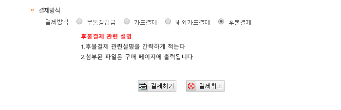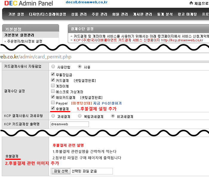 ±âº»¼³Á¤ --> ==>°áÁ¦¼ö´Ü ¼³Á¤ Ãß°¡ ÈĺҰáÁ¦°ü·Ã ¼³¸í À̹ÌÁö¸¦ ²À Ãß°¡ÇÏ¼Å¾ß ÇÕ´Ï´Ù ¹öÀü¾÷µ¥ÀÌÆ®Àü »çÀü ³»ºÎ Å×½ºÆ®¸¦ ¼ö¾øÀÌ °ÅÄ¡³ª ¹öÀü¾÷µ¥ÀÌÆ® ÀÌÈÄ ´ç»ç¿¡¼ ¹ß°ßÇÏÁö ¸øÇÑ È¤½Ã ¿À·ù°¡ ¹ß°ßµÇ´Â °æ¿ì ´ç»ç À¯¼± °í°´¼¾ÅÍ ¶Ç´Â