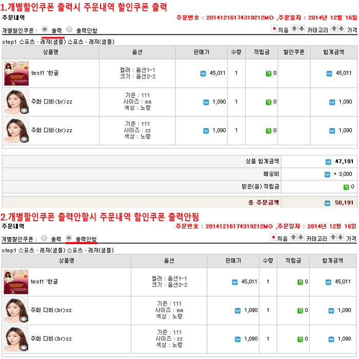 ÀÌÀü °³º°ÇÒÀÎ ÄíÆù Àû¿ëÀ¸·Î ÀÎÇÏ¿© ÁÖ¹®³»¿ª ÇÁ¸°Åͽà °³º°ÇÒÀÎÄíÆùÀ» »ç¿ëÇÏÁö ¾ÊÁö¸¸ °³º°ÇÒÀÎÄíÆù ¿µÇâÀ¸·Î »óǰ¿É¼ÇÃâ·ÂȸéÀÌ Æ²¾îÁö´Â ¿À·ù°¡ ÀÖ¾ú½À´Ï´Ù °ü¸®ÀÚ ¼³Á¤ ÁÖ¹®³»¿ª ȸ鳻 (÷ºÎÀ̹ÌÁö Âü°í ) °³º°ÇÒÀÎÄíÆù Ãâ·Â¿É¼ÇÀ» »ðÀÔÇÏ¿© ¼±Åà Ãâ·ÂÇÒ¼ö ÀÖ´Â ±â´ÉÀ» Ãß°¡ ÇÏ¿´½À´Ï´Ù ¹öÀü¾÷µ¥ÀÌÆ®Àü »çÀü ³»ºÎ Å×½ºÆ®¸¦ ¼ö¾øÀÌ °ÅÄ¡³ª ¹öÀü¾÷µ¥ÀÌÆ® ÀÌÈÄ ´ç»ç¿¡¼ ¹ß°ßÇÏÁö ¸øÇÑ È¤½Ã ¿À·ù°¡ ¹ß°ßµÇ´Â °æ¿ì ´ç»ç À¯¼± °í°´¼¾ÅÍ ¶Ç´Â