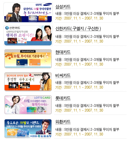 이번달 아래와 같이  카드결제시 무이자할부 행사를 진행하오니 많은 관심바랍니다.